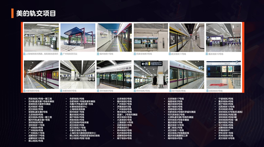 作(zuo)為(wei)(wei)城(cheng)(cheng)市軌(gui)(gui)道(dao)交通領(ling)域的(de)深(shen)耕者,美的(de)樓宇(yu)科(ke)技打(da)造出了一(yi)套以(yi)“安心、低(di)碳、智(zhi)慧、高效(xiao)”為(wei)(wei)核心理念,包含高可靠產品、高效(xiao)控制、集成監控、智(zhi)慧場景和(he)數(shu)字服(fu)務(wu),致力于為(wei)(wei)軌(gui)(gui)道(dao)交通提(ti)供可靠、環保、智(zhi)能和(he)高效(xiao)的(de)綜合解決方(fang)案。截止(zhi)目前,該方(fang)案服(fu)務(wu)于超20座城(cheng)(cheng)市助(zhu)力80多條城(cheng)(cheng)軌(gui)(gui)線路的(de)綠(lv)色化建(jian)設。