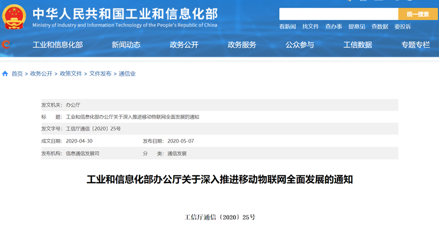 2017年(nian)6月,工信(xin)部辦公廳發(fa)布(bu)的(de)(de)《關于全面推進移(yi)(yi)動物(wu)聯網(NB-IoT)建設(she)發(fa)展的(de)(de)通知》,這是產(chan)業主管(guan)(guan)部門(men)首次在正(zheng)式發(fa)布(bu)文件中提出“移(yi)(yi)動物(wu)聯網”這一(yi)概念,表明移(yi)(yi)動物(wu)聯網獨(du)立(li)體(ti)(ti)系已初(chu)步(bu)形成,針對這一(yi)獨(du)立(li)體(ti)(ti)系發(fa)布(bu)政策文件,體(ti)(ti)現出主管(guan)(guan)部門(men)對其高度重(zhong)視并希望起快速發(fa)展壯大。