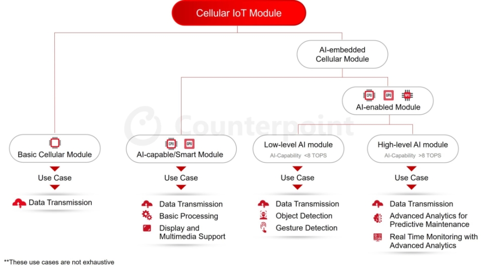 問題來了,什么是 AI 嵌入式蜂窩模組?該機構的分類定義如下,詳見下圖:
