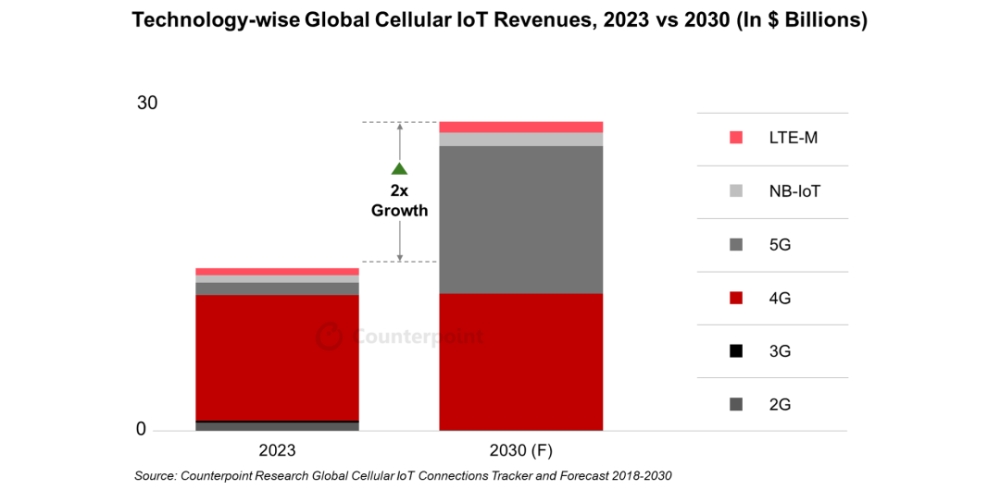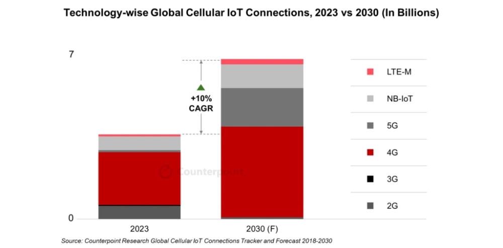 近日,市場調查機構 Counterpoint Research 發布了有關蜂窩物聯網的多項最新追蹤數據,核心信息如下: