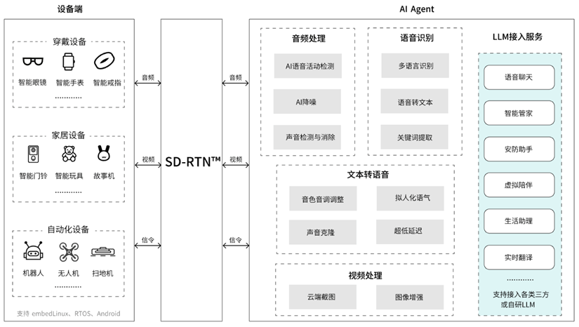 例如對交互延遲進行優化,語音交互延時低至1s內;支持多模態 AI 語義識別和理解;支持 AI降噪,保證清晰的語音交互、支持小包體、低內存、低功耗;適配支持70+主流、高性價比的芯片等,幫助開發者與企業快速構建適配自己硬件的 AI 實時語音對話服務。