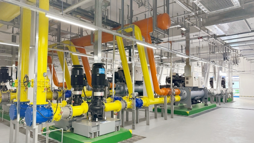 此外,主(zhu)機三大變(bian)頻直(zhi)驅離心機組同樣“黑(hei)科(ke)技”滿(man)滿(man),例如采用(yong)全降膜蒸發式的(de)(de)(de)蒸發器,基本可(ke)以(yi)實現蒸發器內“零”液(ye)位,對比傳(chuan)統的(de)(de)(de)滿(man)液(ye)式、混合降膜式蒸發器,可(ke)減少大量(liang)的(de)(de)(de)制冷(leng)劑(ji)充注量(liang),經濟(ji)環保。值得一提的(de)(de)(de)是,除了(le)主(zhu)機端采用(yong)高效設(she)(she)(she)備,水(shui)泵、管網(wang)、冷(leng)卻塔(ta)等設(she)(she)(she)備的(de)(de)(de)設(she)(she)(she)計也提升了(le)設(she)(she)(she)備的(de)(de)(de)高效、節能運維。例如,冷(leng)凍泵及(ji)冷(leng)卻泵均采用(yong)了(le)立式雙吸(xi)泵形(xing)式,相比常規(gui)端吸(xi)泵效率更高,確保對流量(liang)和揚程(cheng)的(de)(de)(de)精(jing)準控制等等。