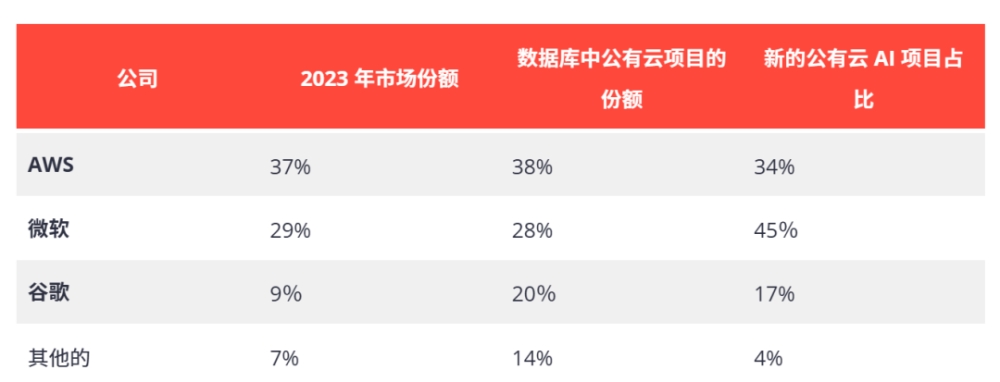 根據 IoT Analytics 自己(ji)的模型,下(xia)表(biao)統計了(le) 2023 年公共云(yun)市場份額: