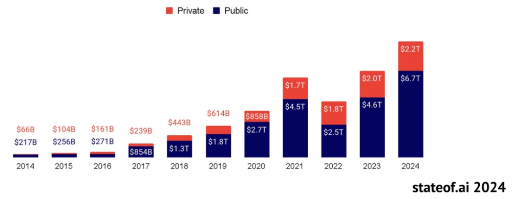 僅上市公司的企業(ye)價(jia)值就(jiu)已超過2023年整個市場的價(jia)值。