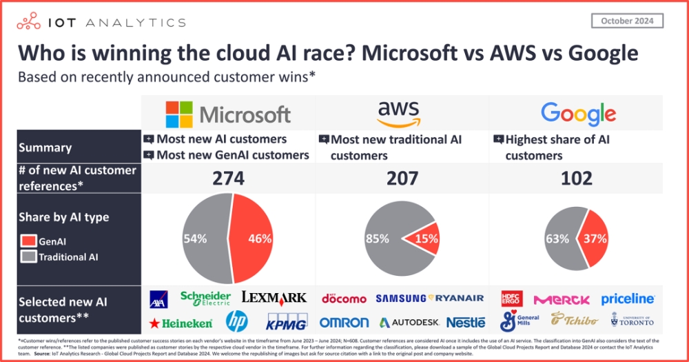 在(zai)激烈(lie)的(de)云(yun)端AI競賽中,巨(ju)頭們正全力以(yi)赴。IoT Analytics的(de)最(zui)新報告(gao)《2024年全球云(yun)平臺AI項(xiang)目(mu)與(yu)能力發展報告(gao)》對這場競賽進行了深入剖(pou)析(xi)。