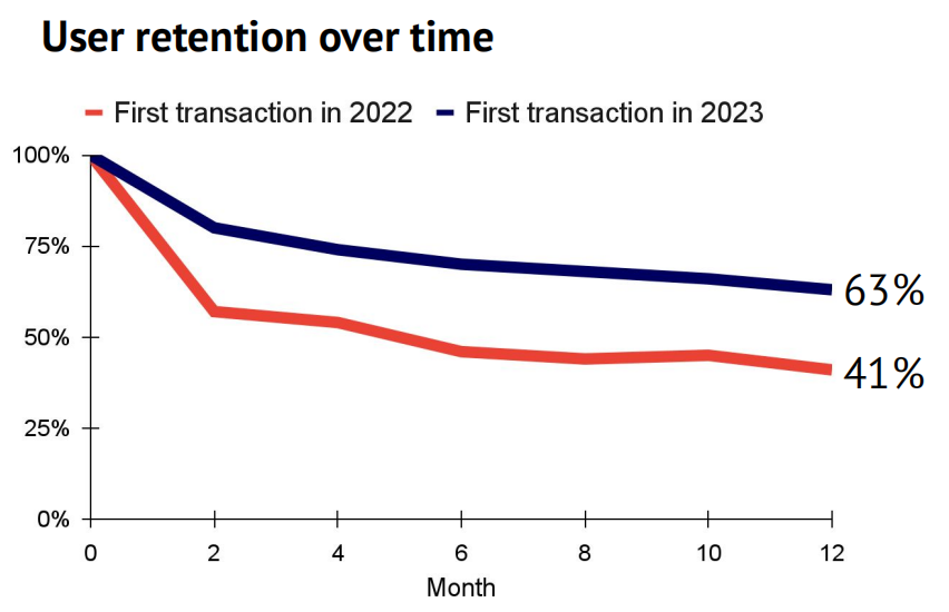 來自美(mei)國企(qi)業金(jin)融科技公司Ramp的新數據(ju)顯示(shi),從2022年(nian)(nian)到(dao)2023年(nian)(nian),客(ke)戶(hu)支(zhi)出和留存率都有顯著提高。