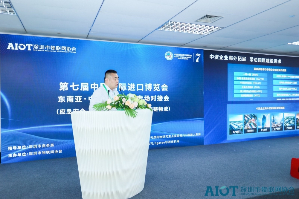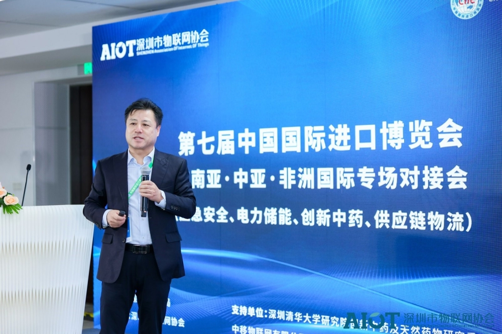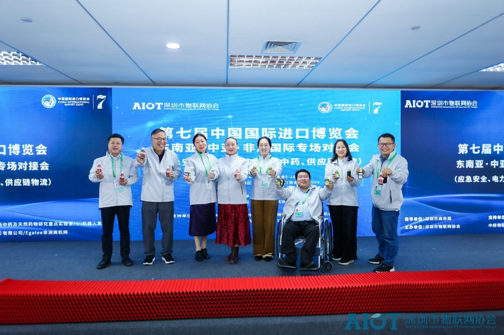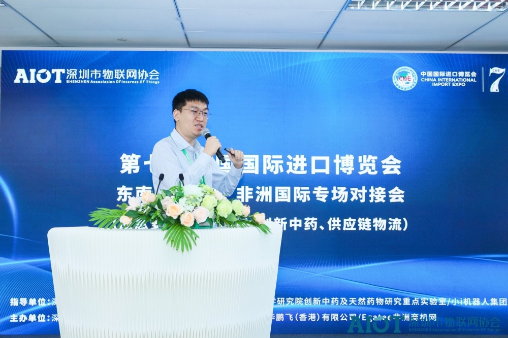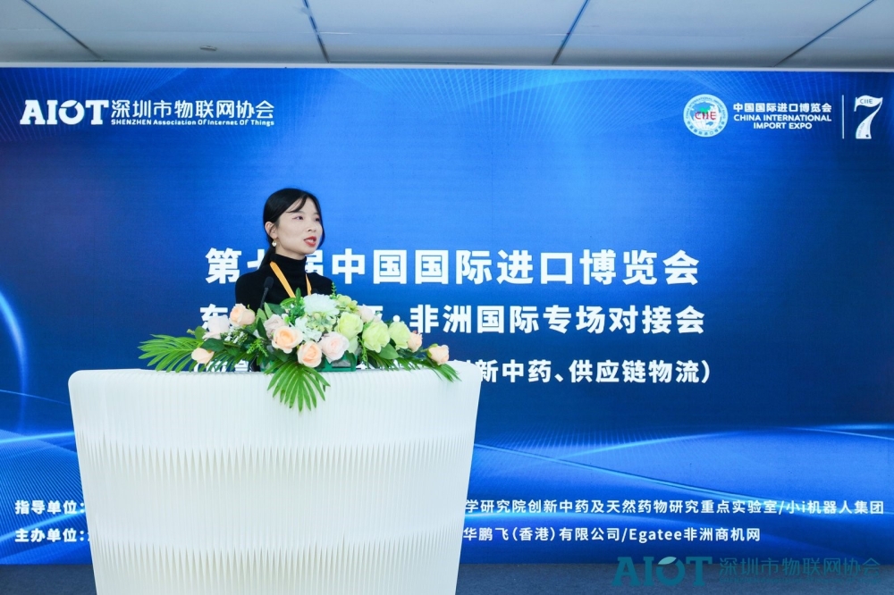 第七屆中國國際進口博覽會期間,“東南亞·中亞·非洲國際專場對接會”于11月8日在國家會展中心(上海)成功舉行。本次對接會由深圳市商務局指導,深圳市物聯網協(xie)會(hui)主(zhu)辦,深(shen)圳(zhen)(zhen)(zhen)(zhen)清(qing)華(hua)大學(xue)研(yan)究院(yuan)創新(xin)中(zhong)(zhong)(zhong)藥(yao)(yao)(yao)(yao)及天然藥(yao)(yao)(yao)(yao)物(wu)(wu)研(yan)究重(zhong)點實驗室(shi)(shi)、小i機器人集團、中(zhong)(zhong)(zhong)移(yi)物(wu)(wu)聯(lian)網有(you)(you)限(xian)(xian)公(gong)(gong)(gong)司(si)、華(hua)鵬飛(fei)(香港)有(you)(you)限(xian)(xian)公(gong)(gong)(gong)司(si)、Egatee非洲商機網協(xie)辦,旨在加強與東(dong)南亞、中(zhong)(zhong)(zhong)亞及非洲地區在創新(xin)中(zhong)(zhong)(zhong)藥(yao)(yao)(yao)(yao)、智慧園區、應急安全、電(dian)力儲(chu)能(neng)、供應鏈物(wu)(wu)流等領域的合(he)作與交(jiao)(jiao)流。中(zhong)(zhong)(zhong)國(guo)商務部投資促(cu)進(jin)局(ju)原副(fu)局(ju)長張玉中(zhong)(zhong)(zhong)、新(xin)疆國(guo)際(ji)博(bo)覽(lan)事務局(ju)黨組副(fu)書記·局(ju)長美麗(li)古麗(li)·吐爾遜、中(zhong)(zhong)(zhong)國(guo)食文化(hua)(hua)研(yan)究會(hui)名(ming)譽會(hui)長·深(shen)圳(zhen)(zhen)(zhen)(zhen)市(shi)(shi)一(yi)滴水匯集公(gong)(gong)(gong)益基(ji)金(jin)會(hui)名(ming)譽理(li)(li)事長齊燕、小i機器人集團創始人副(fu)董事長李金(jin)枝、中(zhong)(zhong)(zhong)國(guo)國(guo)際(ji)文化(hua)(hua)交(jiao)(jiao)流基(ji)金(jin)會(hui)一(yi)帶一(yi)路文化(hua)(hua)發(fa)展基(ji)金(jin)副(fu)主(zhu)任常東(dong)婭、世界中(zhong)(zhong)(zhong)醫(yi)藥(yao)(yao)(yao)(yao)聯(lian)合(he)會(hui)亞健康(kang)專業委員會(hui)副(fu)秘書長·廣東(dong)省發(fa)展中(zhong)(zhong)(zhong)醫(yi)藥(yao)(yao)(yao)(yao)事業基(ji)金(jin)會(hui)理(li)(li)事長賀(he)振泉教授、深(shen)圳(zhen)(zhen)(zhen)(zhen)清(qing)華(hua)大學(xue)研(yan)究院(yuan)·深(shen)圳(zhen)(zhen)(zhen)(zhen)市(shi)(shi)創新(xin)中(zhong)(zhong)(zhong)藥(yao)(yao)(yao)(yao)及天然藥(yao)(yao)(yao)(yao)物(wu)(wu)研(yan)究重(zhong)點實驗室(shi)(shi)主(zhu)任唐旭(xu)東(dong)博(bo)士以及來自華(hua)鵬飛(fei)(香港)有(you)(you)限(xian)(xian)公(gong)(gong)(gong)司(si)、深(shen)圳(zhen)(zhen)(zhen)(zhen)市(shi)(shi)今天國(guo)際(ji)物(wu)(wu)流技術股份(fen)(fen)有(you)(you)限(xian)(xian)公(gong)(gong)(gong)司(si)(股票代碼300532)、深(shen)圳(zhen)(zhen)(zhen)(zhen)英飛(fei)拓科技股份(fen)(fen)有(you)(you)限(xian)(xian)公(gong)(gong)(gong)司(si)(股票代碼002528)、中(zhong)(zhong)(zhong)移(yi)物(wu)(wu)聯(lian)網有(you)(you)限(xian)(xian)公(gong)(gong)(gong)司(si)、深(shen)圳(zhen)(zhen)(zhen)(zhen)市(shi)(shi)華(hua)思旭(xu)科技有(you)(you)限(xian)(xian)公(gong)(gong)(gong)司(si)、中(zhong)(zhong)(zhong)英區域協(xie)會(hui)、通用醫(yi)藥(yao)(yao)(yao)(yao)(深(shen)圳(zhen)(zhen)(zhen)(zhen))有(you)(you)限(xian)(xian)公(gong)(gong)(gong)司(si)、中(zhong)(zhong)(zhong)國(guo)聯(lian)合(he)網絡通信有(you)(you)限(xian)(xian)公(gong)(gong)(gong)司(si)深(shen)圳(zhen)(zhen)(zhen)(zhen)市(shi)(shi)分公(gong)(gong)(gong)司(si)、深(shen)圳(zhen)(zhen)(zhen)(zhen)智薈物(wu)(wu)聯(lian)技術有(you)(you)限(xian)(xian)公(gong)(gong)(gong)司(si)、深(shen)圳(zhen)(zhen)(zhen)(zhen)德永順科技有(you)(you)限(xian)(xian)公(gong)(gong)(gong)司(si)、深(shen)圳(zhen)(zhen)(zhen)(zhen)市(shi)(shi)優美環境治理(li)(li)有(you)(you)限(xian)(xian)公(gong)(gong)(gong)司(si)等100余位(wei)行(xing)業優秀代表出席了此(ci)次活動。