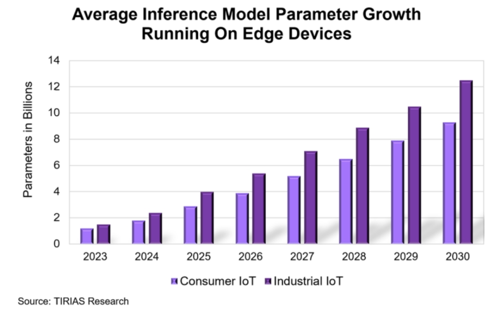根據Tirias Research的分析,隨著AI模型的不斷壓縮優化以及終端和邊緣設備算力的持續提升,越來越多的GenAI模型將能夠在設備端完成推理和執行。這意味(wei)著,適用于端側處理的模(mo)型規模(mo)將(jiang)(jiang)隨時間推移而不(bu)斷(duan)增加,設備本地(di)的AI處理能力將(jiang)(jiang)不(bu)斷(duan)拓展。