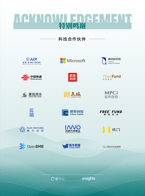 該(gai)報告也得到了產(chan)學(xue)研領域(yu)眾多(duo)機構的支持,不僅在(zai)趨勢提名上眾智,在(zai)具(ju)體(ti)技術方面(mian),也分(fen)享(xiang)了精彩判斷和評論。這(zhe)讓(rang)報告有了更廣(guang)的視(shi)角基(ji)礎,以及更深的產(chan)業(ye)生態基(ji)礎,特此(ci)鳴謝(xie)——