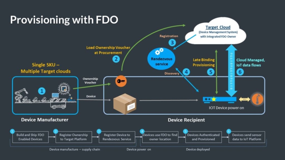 什么是 FDO?這是 FIDO 聯盟在 2021 年 4 月,針對物聯網設備所公布的 IoT 開放標準協定,名為 FIDO Device Onboard(FDO)。FIDO 聯盟是一個開放的行業協會,其使命是:減少全世界對密碼的依賴。在該聯盟看來——盡管越來越多的人認為需要減少密碼的使用,但密碼仍然存在。消費者不喜歡這樣的用戶體驗,而在線服務提供商也不想承擔開發和配置自己的專用解決方案的成本和復雜性。因此,FIDO 聯盟希望能改變身份驗證的本質,它采用開放標準,使用比密碼和短信 OTP 更安全、更易于消費者和員工使用、更易于服務提供商部署和管理的通行密鑰進行防網絡釣魚登錄。聯盟還提供安全設備上載標準,以確保在云和物聯網環境中運行的聯網設備的安全性和效率。基于聯盟愿景,我們就能夠更好地理解 FDO 標準。這是一種物聯網設備自動載入協議。我們知道,設備入網是將機密和配置數據安裝到設備中的過程,以便設備能夠與物聯網平臺安全地連接和交互,設備所有者可利用物聯網平臺通過以下方式管理設備:修補安全漏洞;安裝或更新軟件;檢索傳感器數據;與執行器互動等……FDO 是一種自動載入機制,這意味著它是自主調用的,只需與環境進行有限的、特定的交互即可完成。FDO 允許延遲綁定設備憑據,這樣,一個制造的設備就可以在不做任何修改的情況下搭載到許多不同的物聯網平臺上。