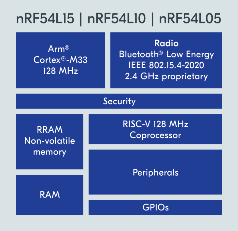 nRF54L 系列(lie)(lie) SoC 配備了運行頻率(lv)為 128 MHz 的(de)(de) Arm Cortex-M33 處理(li)器(qi),大(da)(da)大(da)(da)提高(gao)了處理(li)能(neng)(neng)力(li)和效(xiao)率(lv)。與(yu) nRF52840 相比,這些(xie) SoC 的(de)(de)處理(li)能(neng)(neng)力(li)提高(gao)了一倍,能(neng)(neng)效(xiao)提高(gao)了兩倍。此(ci)外(wai),該系列(lie)(lie)采用 22 納米(mi)工藝節(jie)點,有助于實現低功(gong)耗和高(gao)性(xing)能(neng)(neng)。