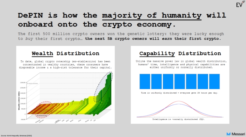 上圖中左(zuo)側的柱形圖從能(neng)力維度解析了DePIN賦能(neng)全球財富分(fen)配的路(lu)徑邏(luo)輯。
