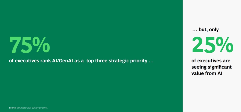 在2025年(nian)的(de)(de)最新研(yan)究中,BCG調研(yan)了(le)全球1803名企(qi)業高管,發現(xian)三分之一(yi)的(de)(de)公司(si)計(ji)劃今年(nian)在升級技術方(fang)面投資至少2500萬美元(yuan)。