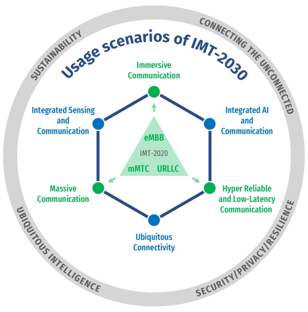 2023年11月,國際電信聯盟(ITU)正式發布了6G系統標準和空口技術開發的框架,提出了6G系統將應實現包容性、泛在連接、可持續性、創新、安全性、隱私性和彈性、標準化和互操作、互通性等(deng)七大目標,支撐(cheng)構建包容性的信息社會,實現聯合國可持續發展目標。