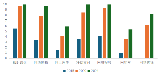 從數據中可以看到,尤其(qi)是(shi)(shi)網(wang)上外賣、移動支付、網(wang)絡(luo)直播、網(wang)絡(luo)視頻、網(wang)約車增(zeng)(zeng)(zeng)(zeng)速(su)最快,這(zhe)些也(ye)是(shi)(shi)移動互(hu)聯網(wang)流(liu)量(liang)增(zeng)(zeng)(zeng)(zeng)長(chang)(chang)的(de)大戶。當然,2020-2024年(nian)這(zhe)幾年(nian)用(yong)(yong)戶規模也(ye)依然在增(zeng)(zeng)(zeng)(zeng)長(chang)(chang),只是(shi)(shi)增(zeng)(zeng)(zeng)(zeng)速(su)沒有(you)(you)2015年(nian)之前快。今(jin)天這(zhe)些應用(yong)(yong)的(de)形(xing)態和功(gong)能(neng)是(shi)(shi)2015年(nian)無法比擬的(de),如(ru)今(jin)這(zhe)些應用(yong)(yong)已(yi)經將大量(liang)新的(de)商業(ye)模式嵌入,如(ru)金融功(gong)能(neng)、社交(jiao)功(gong)能(neng)等,其(qi)所體現出(chu)來(lai)的(de)單用(yong)(yong)戶價值遠遠超過2015年(nian)。因此,也(ye)有(you)(you)近年(nian)來(lai)美團、拼多(duo)多(duo)、字節跳動等新興平臺公司的(de)社會影響力在持(chi)續(xu)增(zeng)(zeng)(zeng)(zeng)強。