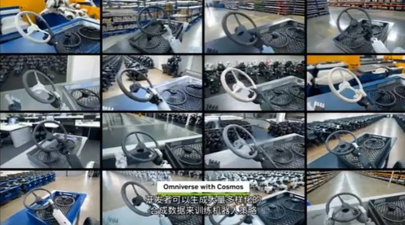 根據不同的任務,Omniverse聚合現實世界中的傳感器數據,隨后對世界模型進行調控,將原始采集數據拓展生成為大量高度逼真且多樣的數據,借助被Cosmos與Omniverse增強后的數據集,設備運營策略能夠在數字孿生中進行充分的模(mo)擬(ni)訓(xun)練(lian)。