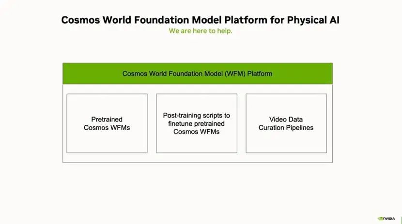 在(zai)早些時候的(de)(de)CES上,NVIDIA發(fa)(fa)(fa)布過(guo)面向物理(li)AI開(kai)(kai)發(fa)(fa)(fa)的(de)(de)Cosmos。NVIDIA Cosmos是(shi)一個世(shi)界(jie)基礎模型(xing)(WFM)開(kai)(kai)發(fa)(fa)(fa)平(ping)(ping)臺,用(yong)于推(tui)動物理(li)AI的(de)(de)發(fa)(fa)(fa)展。其核心是(shi)Cosmos WFM,這些開(kai)(kai)放可(ke)用(yong)的(de)(de)預訓(xun)練(lian)多模態模型(xing)可(ke)供(gong)開(kai)(kai)發(fa)(fa)(fa)者直(zhi)接(jie)使(shi)用(yong),用(yong)于生成視頻形(xing)式的(de)(de)世(shi)界(jie)狀(zhuang)態和物理(li)AI推(tui)理(li),或(huo)通過(guo)后(hou)訓(xun)練(lian)開(kai)(kai)發(fa)(fa)(fa)專門的(de)(de)物理(li)AI模型(xing)。NVIDIA Cosmos還(huan)包括先進的(de)(de)視覺標記(ji)器(tokenizers)、護欄(lan)(guardrails)、加速視頻數(shu)據處理(li)平(ping)(ping)臺以(yi)及后(hou)訓(xun)練(lian)框架。