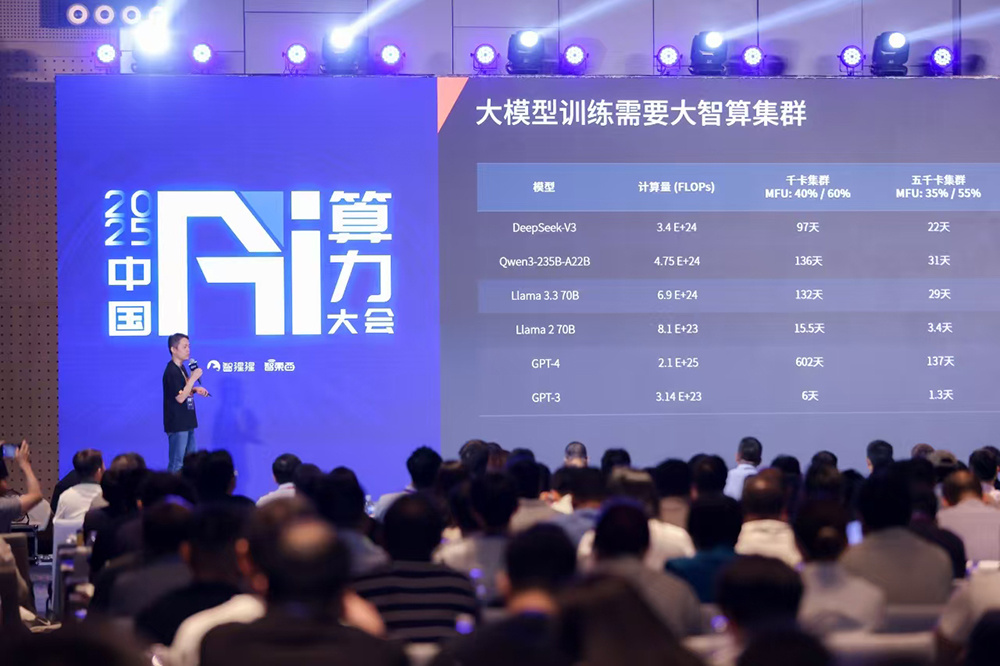 摩爾線程(cheng)副總裁(cai)王華(hua)引用了一些研究數(shu)據(ju):2020至(zhi)2025年(nian)間,大(da)模(mo)(mo)型訓練(lian)的算力(li)需求提升近1000倍(bei) ,驅動力(li)來(lai)自參數(shu)規(gui)模(mo)(mo)與數(shu)據(ju)量雙向增長。以DeepSeek-V3為例,其訓練(lian)所(suo)需算力(li)達102?級別,在萬(wan)卡集(ji)群上可將(jiang)訓練(lian)時間壓縮至(zhi)13天內完成(cheng) 。