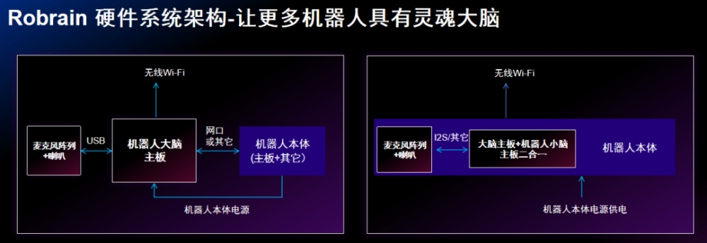 據悉,目前Robrain AI能(neng)(neng)提(ti)供(gong)兩(liang)種(zhong)具體解決(jue)方(fang)(fang)案,第一(yi)種(zhong)是快速(su)融(rong)合的(de)方(fang)(fang)案,在機器(qi)(qi)人(ren)本(ben)體之外,提(ti)供(gong)單(dan)獨的(de)機器(qi)(qi)人(ren)大(da)腦,方(fang)(fang)案各個模(mo)塊(kuai)相對獨立,方(fang)(fang)便(bian)快速(su)整(zheng)合,讓傳統機器(qi)(qi)人(ren)具備大(da)腦決(jue)策以及語音交互能(neng)(neng)力。另一(yi)種(zhong)是深度(du)融(rong)合方(fang)(fang)案,整(zheng)合度(du)會更(geng)(geng)高,一(yi)體化的(de)軟硬件設計可靠性(xing)也(ye)更(geng)(geng)高,適合需要(yao)深度(du)整(zheng)合具身智能(neng)(neng)場景應(ying)用的(de)機器(qi)(qi)人(ren)。