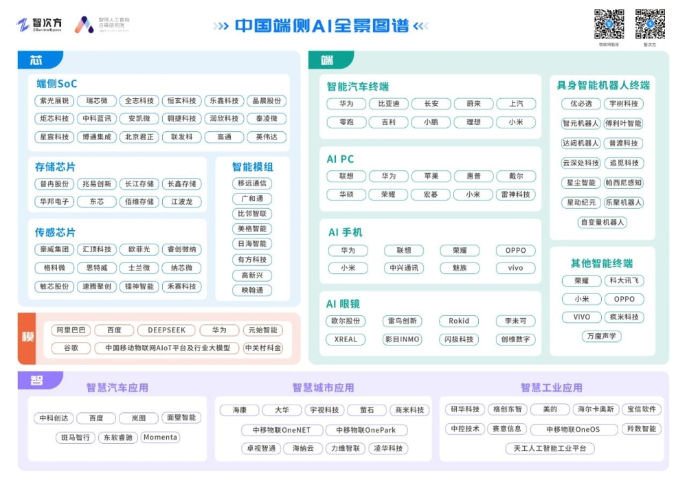 這些核心價值使其成為推動“芯模端智一體化”這一新范式的關鍵引擎,而數智產業也亟需一張精準導航圖。峰會期間,由智次方研究院與智用研究院聯合編撰的《中國端側AI全景圖譜》重磅發布!