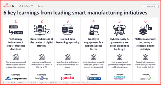 IoT Analytics旗下Knud Lasse Lueth智能制造研究團隊在不久前通過審查和分析智能制造實施案例,總結并發布了六個數字化轉型中的經驗教訓。筆者覺得很有啟發意義,在此進行編譯、分享和解讀。