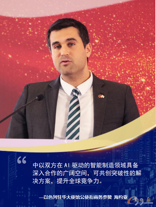 以色(se)列(lie)駐華大(da)使(shi)館公(gong)使(shi)銜商(shang)務參贊海約亞(Yoav Haimi)先(xian)生發表致辭(ci)。他對(dui)以色(se)列(lie)在(zai)人工(gong)智能(neng)、智能(neng)制(zhi)造(zao)(zao)和工(gong)業(ye)軟件(jian)等領域的(de)創新成果(guo)進行了總結,并列(lie)舉了諸多以色(se)列(lie)企業(ye)在(zai)相(xiang)關領域的(de)創新技術(shu)及應用(yong)實踐。他對(dui)中以兩國在(zai)智能(neng)制(zhi)造(zao)(zao)領域的(de)合(he)作前景(jing)進行了展望(wang),強調雙方在(zai)人工(gong)智能(neng)驅動的(de)自動化(hua)、工(gong)業(ye)網(wang)絡(luo)安全和智能(neng)工(gong)廠等領域,具備深入合(he)作的(de)廣闊空間,希望(wang)雙方攜手共(gong)創突破(po)性(xing)的(de)解決方案,共(gong)創智能(neng)制(zhi)造(zao)(zao)的(de)嶄新時代(dai)。